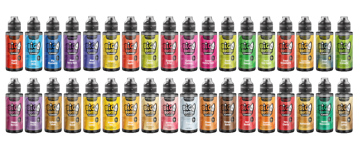 Bei einer Auswahl von über 30 Sorten hat jeder Nutzer die Chance, ein Aroma zu finden, welches seinen individuellen Vorstellungen entspricht. Natürlich finden sich in der Range klassischer Big Bottle Longfills die bei vielen Nutzern beliebten, fruchtigen Geschmacksrichtungen. Angeboten werden dabei Single Tastes wie Big Blueberry oder kombinierte Fruchtaromen wie Apple Peach. In einer breiten Auswahl von Sorten dürfen auch klassische Tabakvariationen wie Indiana Tabak nicht fehlen. Bezüglich kühler Aromen umfasst das Sortiment von Big Bottle Tastes wie Polar Ice mit dem intensiven Geschmack reinen Menthols oder Arctic Mint, welches die Aromen von Menthol und Pfefferminze kombiniert. Auch Variationen wie Fresh Guave, wo fruchtige Noten mit zusätzlicher Kühle abgerundet werden, gehören zum Angebot. Die sogenannten “Tasty Tastes” sind von Süßspeisen oder Gebäckspezialitäten inspiriert. Big Bottle hat hier Longfills wie Waffeltraum oder Grandma’s Vanilla Custard im Programm. Sorten wie White Coffee gehen geschmacklich auf Kaffeespezialitäten zurück. Big Bottle hat es sich zur Aufgabe gemacht, für jeden Nutzer ein passendes Aroma anzubieten. Die Auswahl der angebotenen Produkte zeugt von diesem Anspruch!