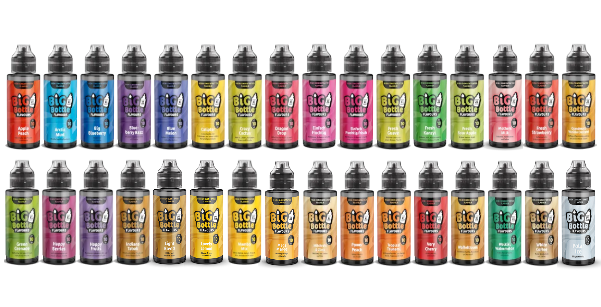 Bei einer Auswahl von über 30 Sorten hat jeder Nutzer die Chance, ein Aroma zu finden, welches seinen individuellen Vorstellungen entspricht. Natürlich finden sich in der Range klassischer Big Bottle Longfills die bei vielen Nutzern beliebten, fruchtigen Geschmacksrichtungen. Angeboten werden dabei Single Tastes wie Big Blueberry oder kombinierte Fruchtaromen wie Apple Peach. In einer breiten Auswahl von Sorten dürfen auch klassische Tabakvariationen wie Indiana Tabak nicht fehlen. Bezüglich kühler Aromen umfasst das Sortiment von Big Bottle Tastes wie Polar Ice mit dem intensiven Geschmack reinen Menthols oder Arctic Mint, welches die Aromen von Menthol und Pfefferminze kombiniert. Auch Variationen wie Fresh Guave, wo fruchtige Noten mit zusätzlicher Kühle abgerundet werden, gehören zum Angebot. Die sogenannten “Tasty Tastes” sind von Süßspeisen oder Gebäckspezialitäten inspiriert. Big Bottle hat hier Longfills wie Waffeltraum oder Grandma’s Vanilla Custard im Programm. Sorten wie White Coffee gehen geschmacklich auf Kaffeespezialitäten zurück. Big Bottle hat es sich zur Aufgabe gemacht, für jeden Nutzer ein passendes Aroma anzubieten. Die Auswahl der angebotenen Produkte zeugt von diesem Anspruch!