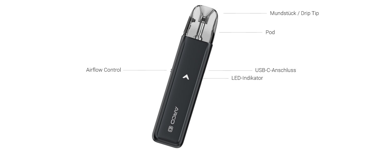• 1x Arco Pod mit 0,6 Ohm (vorinstalliert)